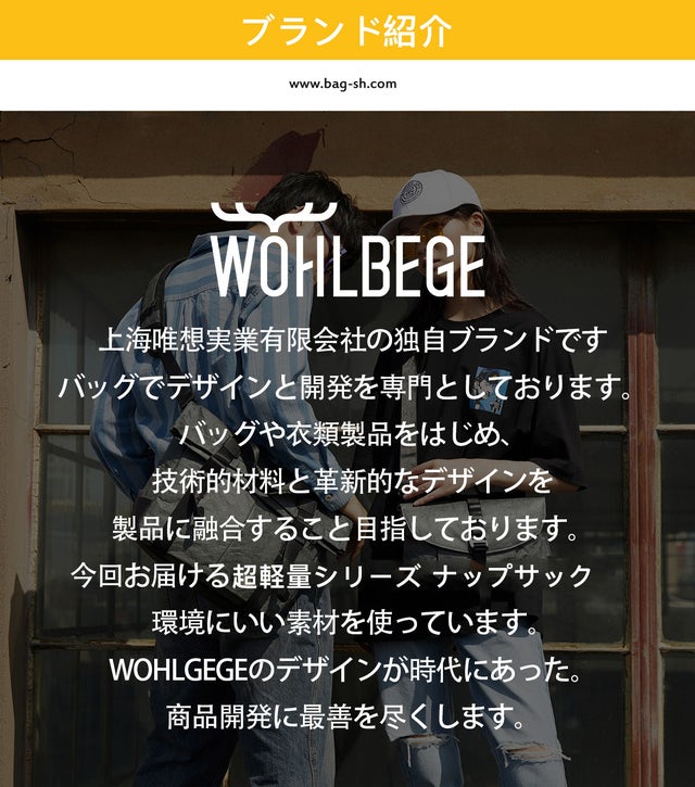 【早割30名様限定・35%OFF】WOHLBEGE 超軽量 ナップサック一個