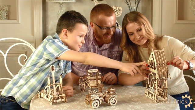 そしてウッドトリックの製品は大人向けだけでなく若い方々や更に大人の助力の元で小さなお子様にも楽しんで頂ける事を目指しています。また、個人の方々だけでなく家族やお友達と知恵を出し合って工夫してつくる事によって、出来上がった時にみんなで大きな達成感が味わえます。特にお子様にとってはエンジニアリングの世界へのきっかけとなる事でしょう。ウッドトリックの3Dパズルはヨーロッパや北米南米、アフリカやアジアで既に多くの人達に楽しまれています。現代社会の至る所で子供の親たちは思春期の子供たちの成長を願っており、ウッドトリックの模型は、子供たちが没頭してしまいがちなタブレットなどから遠ざけ、家族たちで一緒に楽しむことができて子供たちの脳の発達に貢献します。そういった発達は根本的なメカニズムや根気強さ、集中力や芸術的で想像的な考えから生まれるものです。