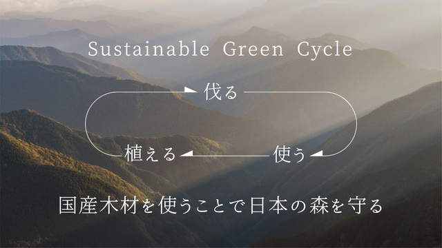 私たちは、国産木材の使用を訴求することで、日本の森を守っていきたいと考えています。