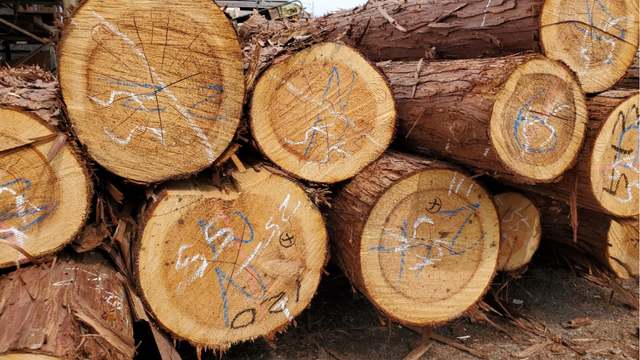 太くてまっすぐな幹にも、細い枝や曲がった幹にも、それぞれの用途があります。すべて貴重な資源として、捨てることなく、有効に活用できるのです。
