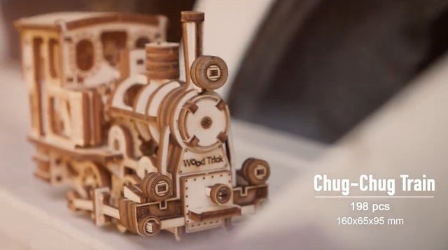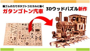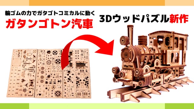 - 【ウッドパズルの新作】輪ゴムと歯車の力で面白く動くガタンゴトン汽車