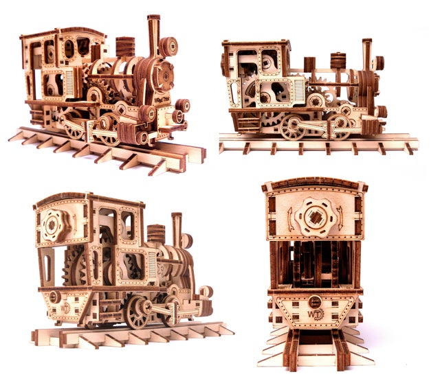 そんなウッドトリックから今回、新製品の『ガタンゴトン汽車』がリリースされます!その名の通り輪ゴムとギアの力でガタンゴトンとパワフルに走ります!線路も付いていますのでその上に置いておけば立派なインテリアにもなります。自分で試行錯誤して組み立てた後に動かして遊んだり飾っておいたり出来る画期的な3Dパズルです!