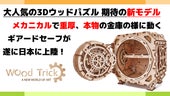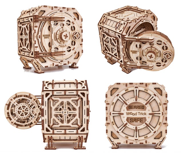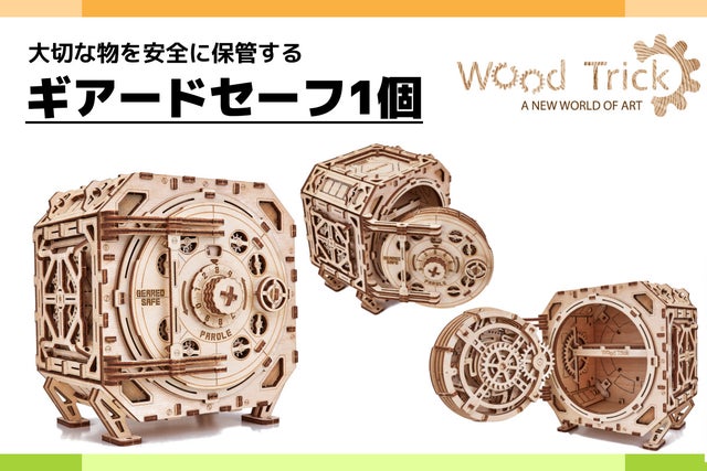 ※なお、今回紹介させて頂くギアードセーフは本物の金庫を元にデザインされており重厚で堅牢な作りではありますが、木で出来ている模型ですのでどのような状況でも必ず破られないという事はありません。ニッパーなどで無理やり切断すれば開封が可能です。