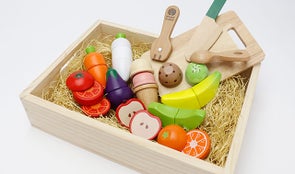 野菜、果物、アイスに大きい収納木箱とまな板をセット。