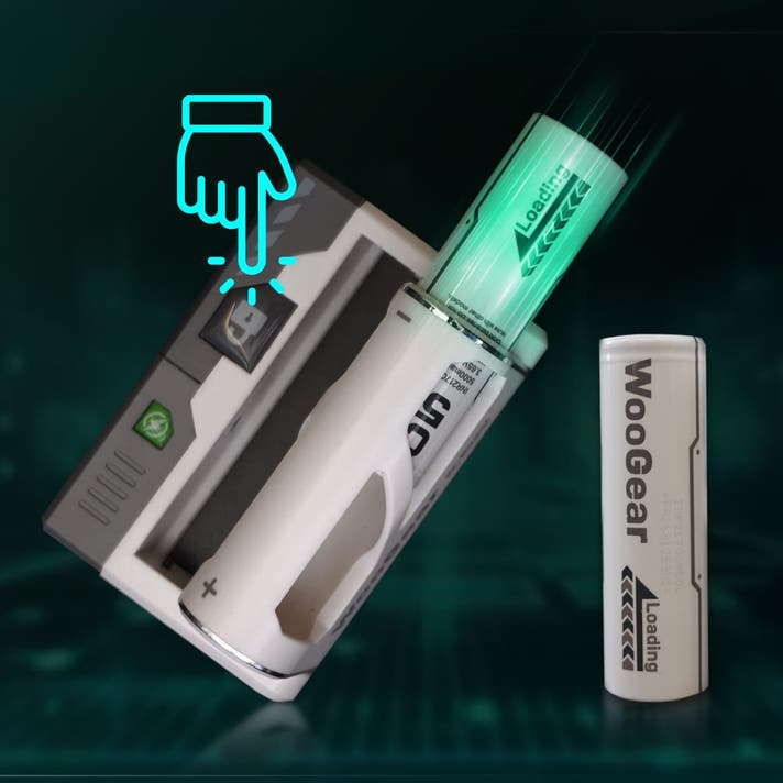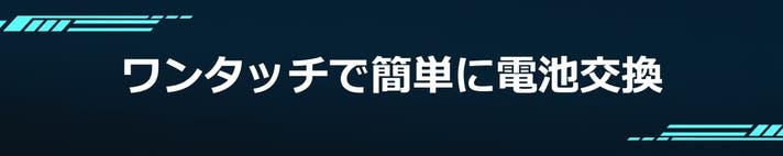 電池が切れた場合は、ボタンを押すだけで、フル充電された電池にすぐに交換できます。セットするときの「カチッ」の音と触感が、くせになる快感を与えます。