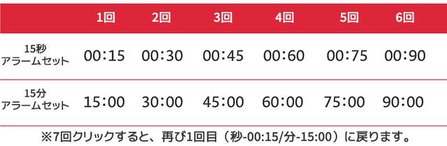 - アラームのリセット方法は、該当するボタンを長押しするとリセットされます。