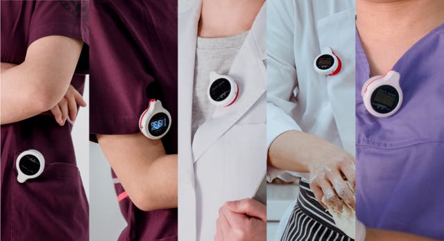 クリップと回転部、角度調節部をデザインして業務環境およびユニフォームとの互換性を高めました。また、画面を何度も確認しなくても使いやすいようアラームが鳴ります。