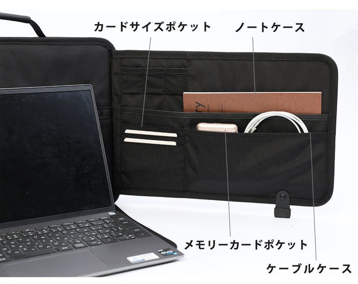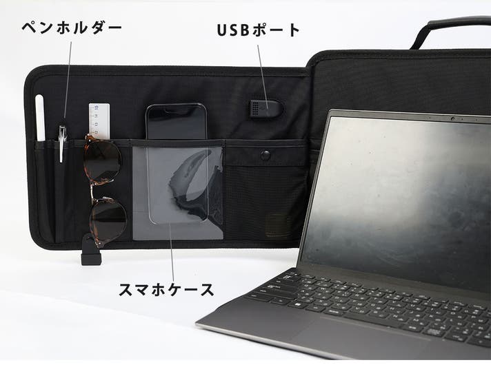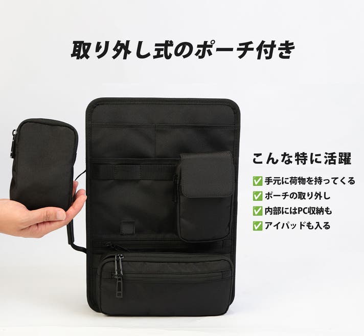 - PC~小物まで収納!21個のポケットで必要なものを見やすく収納!更に着脱可能なポーチ付き!