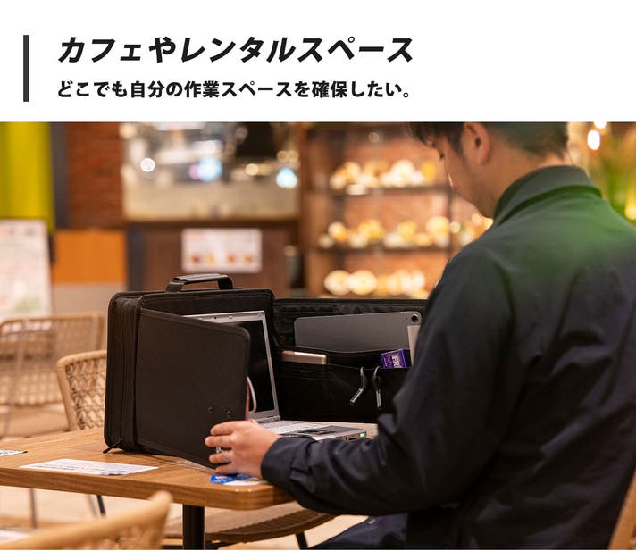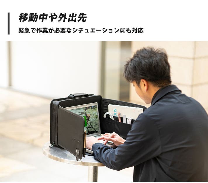- どこでもあなた専用のスペースを確保!集中できる空間を持ち歩くワークスティションバッグ!