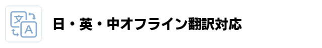 A:オフラインで英語、日本語、中国語のテキスト翻訳のみ機能します。