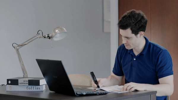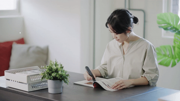 多国語翻訳のペン型スキャナーで文章をなぞれば、55カ国語の文章翻訳や音声読み上げ機能を使用できます。複数行の読み込みにも対応。