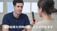 タンを長押しして、話し終わって指を離すと、瞬間に翻訳してくれます!112言語のリアルタイム翻訳が可能です。日本語から外国語または外国語から日本語、2つの言語を選択してボタンを押すだけで翻訳できます。