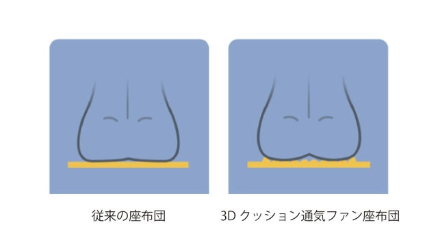 ズバリそれらを解消するには、クッションが鍵!!腰やお尻にかかる負担を軽減し、通気性も良く、いつまでも座っていたい「3Dクッション通気ファン座布団」!!