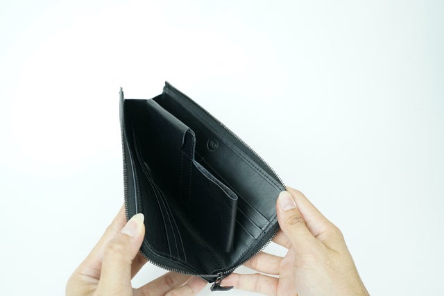 L字ファスナーを開いた瞬間に財布内部全体が見渡せる設計なので、どこに何があるか瞬時に判断することができ、出し入れをとってもスムーズに行うことが可能!