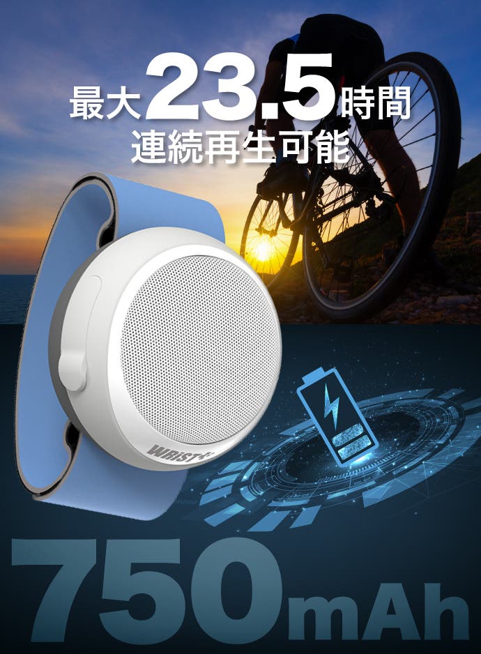 最大23.5時間の連続再生に対応※しているため、ロングライドやツーリング、アウトドアでも途中で充電を気にする必要がありません。長時間の移動でも安心して音楽を楽しめます。