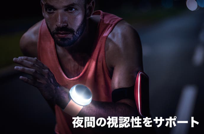 夜間のランニングやサイクリング時でも、周囲から認識されやすい設計です。