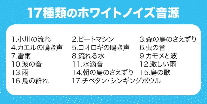 また、一定の音が続くホワイトノイズは、赤ちゃんの落ち着いた空間づくりのひとつの方法として取り入れることができます。