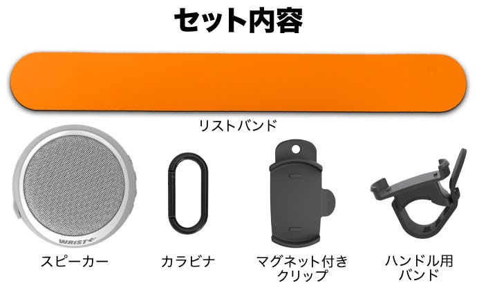 セット内容:スピーカー(本体)、リストバンド※、カラビナ、マグネット付きクリップ、ハンドル用バンド、充電用USB-Cケーブル