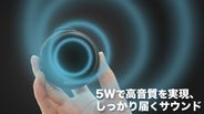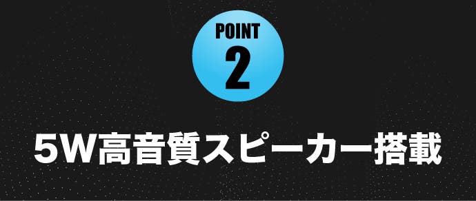 従来モデルの3Wから進化した5W出力を搭載し、走行中の風切り音や周囲の環境音にもかき消されにくい十分な音量を確保。音量を上げても歪みにくく、屋外でも安定したクリアなサウンドを実現します。