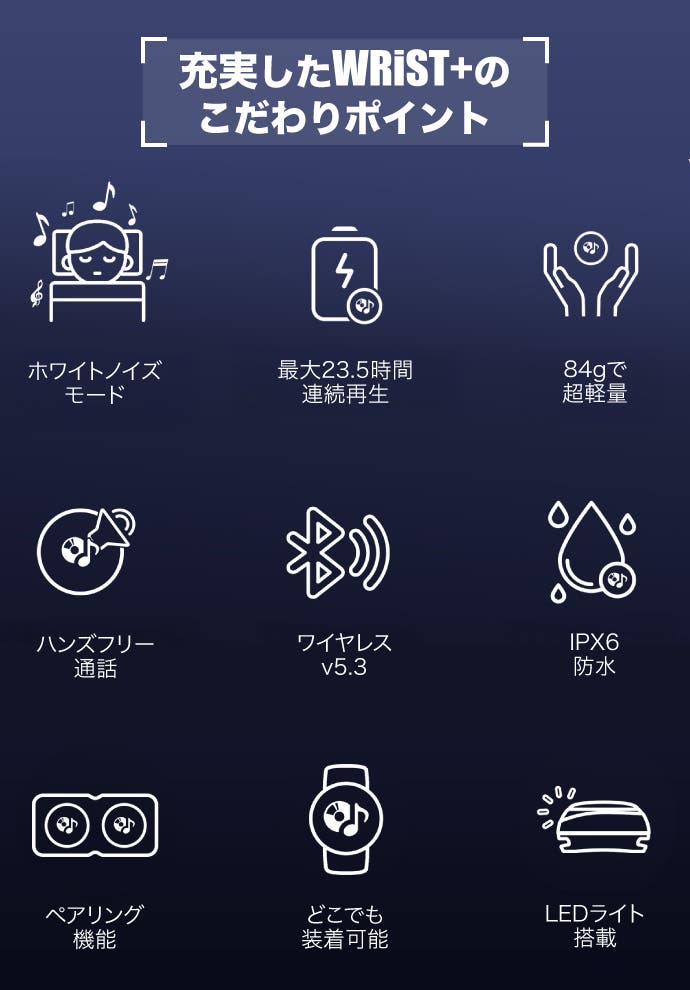 WRiST+(リストプラス)は、耳を塞がずに音楽を楽しめるウェアラブルスピーカーです。