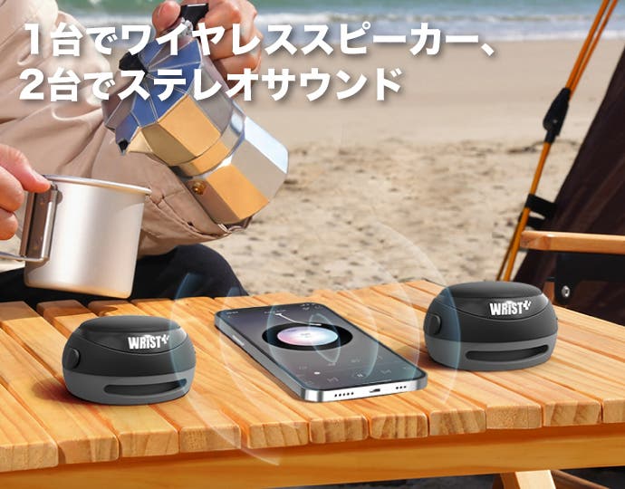 別売りのWRiST+ (リストプラス)をもう1台追加購入いただくことで、2台をペアリングし、完全ワイヤレスステレオスピーカーとしてご使用いただけます。