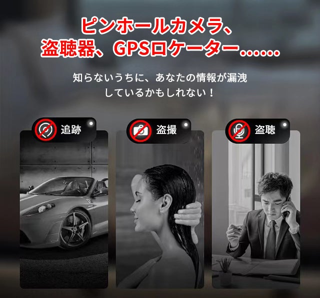 - 身近に潜んだピンホールカメラや盗聴器、GPSロケーターなどを発見してプライバシーを守ります。