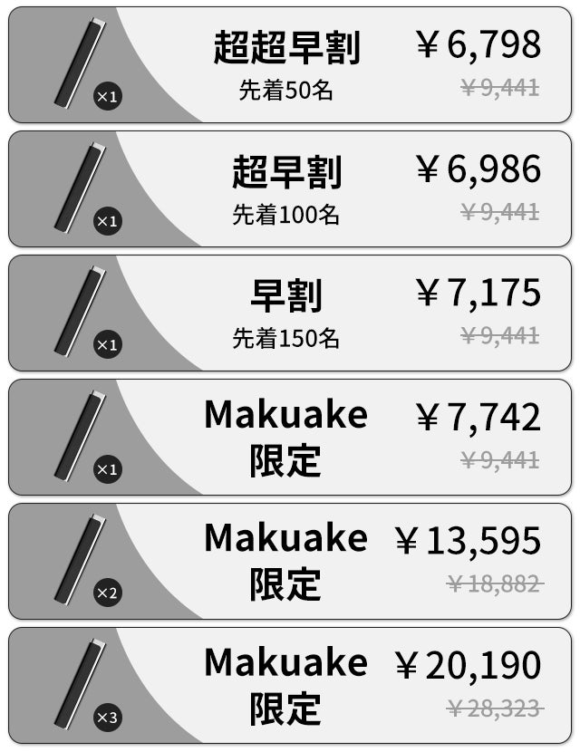 ※使用感などに関しては、感じ方に個人差が予想される製品でございます。そのため、使用感等に関する返品・返金はお受けいたしかねます。 ※初期不良以外に関する返品・返金はお受けいたしかねます。 ※開発中の製品のため、デザイン・カラー・素材などの仕様が一部変更になる可能性がございます。 ※モニター環境によって、画像の色が実物と異なって見える場合がございます。 ※応援購入の数が想定を上回った場合、製造工程上の都合等により出荷時期が遅れる場合がございます。 ※想定を上回る皆様から応援購入を頂き、量産体制を更に充実させることができた場合、一般販売価格が予定価格を下回る可能性がございます。 ※リターン品の配送が完了するまで、香港揚名(ホンコン・ヤンミン)はShenzhen Qitaishan Technology Co., Ltd.の日本における独占販売権を有する正規代理店です。並行輸入品が発生する可能性がございますが、並行輸入品は正規代理店による製品サポートを受けることができません。 また、正規代理店を通じて購入することで、日本国内での流通に必要な各種認証の取得や、関税の適切な処理が担保されます。 ※並行輸入品が発生する可能性があります。正規以外での個人輸入等は、完全に防ぐことができない場合がございます旨、予めご了承のほどお願いいたします。 ※一部国内に類似商品が出回っている場合がございます。弊社では他社の類似品に関してのお問い合わせには対応出来ませんのでご了承ください。 ※本文中に記載させていただいたスケジュールは、あくまでプロジェクト公開時点の予定です。応援購入の性質上、配送遅延のおそれがございます。 ※原則として、配送遅延に伴う応援購入のキャンセルはできませんが、リターン配送予定月から3ヵ月を超えた場合には、希望者に限りキャンセルにて対応させていただきます。