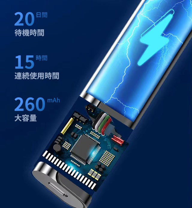 バッテリー容量は260mAhなのに、最大15時間連続使用可能です。待機時間は20日間にもなり、面倒な充電の手間を減らせます。Type-C充電式でモバイルバッテリーがあれば、わずか1時間で充電完了。出張や旅行中も快適に過ごせます。