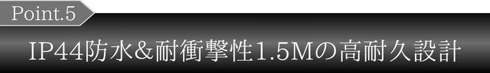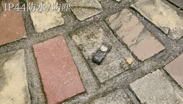 IP44防水/防塵性能と1.5M耐衝撃性を兼ね備えたタフな設計。