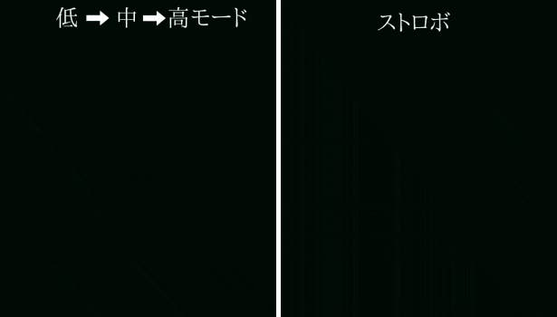 電源ボタン1クリック:低モード→中モード→ストロボモードへ