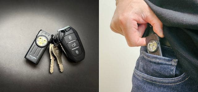 キーホルダー感覚で常に携帯可能。車のキーや鍵と一緒に携帯しても全く重さを感じさせません。バッグやジーンズのウォッチポケットに入れてもかさばらず、毎日持っていたくなるサイズと軽さ。