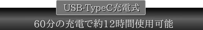 急速充電:約60分の充電で約12時間使用可能(低モード時)