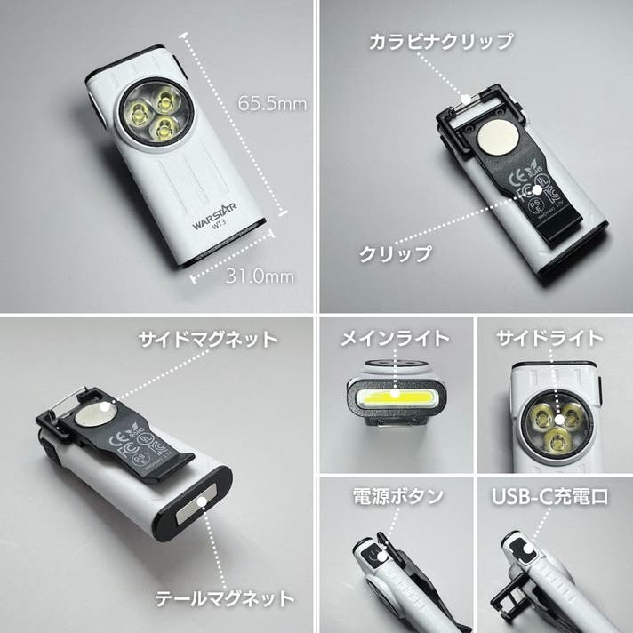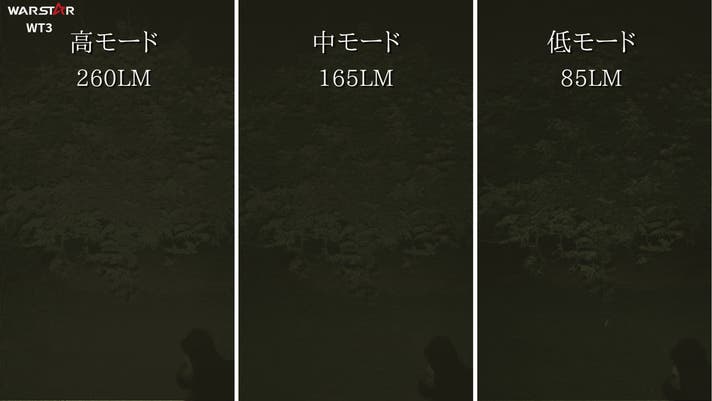 WT3はメインライトに4段階の照明モードと、サイドライトに5段階の照明モードで合計9つの照明モードを搭載。