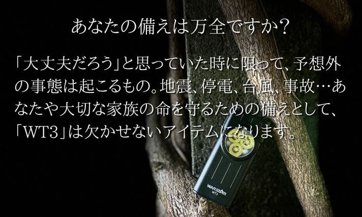 どうぞ、「WT3 高性能デュアル懐中電灯」への応援をよろしくお願いいたします。