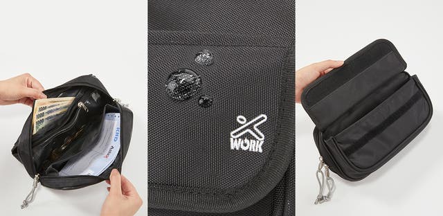 X-WORK専用に設計した「ドライバーズバッグ 」腰ベルトに直接取り付け可能で伝票やお金を入れて便利にご使用いただける様にこだわりを持って作りました。