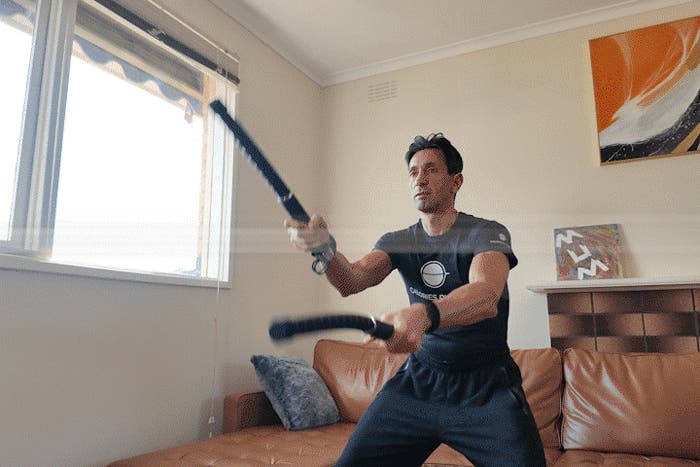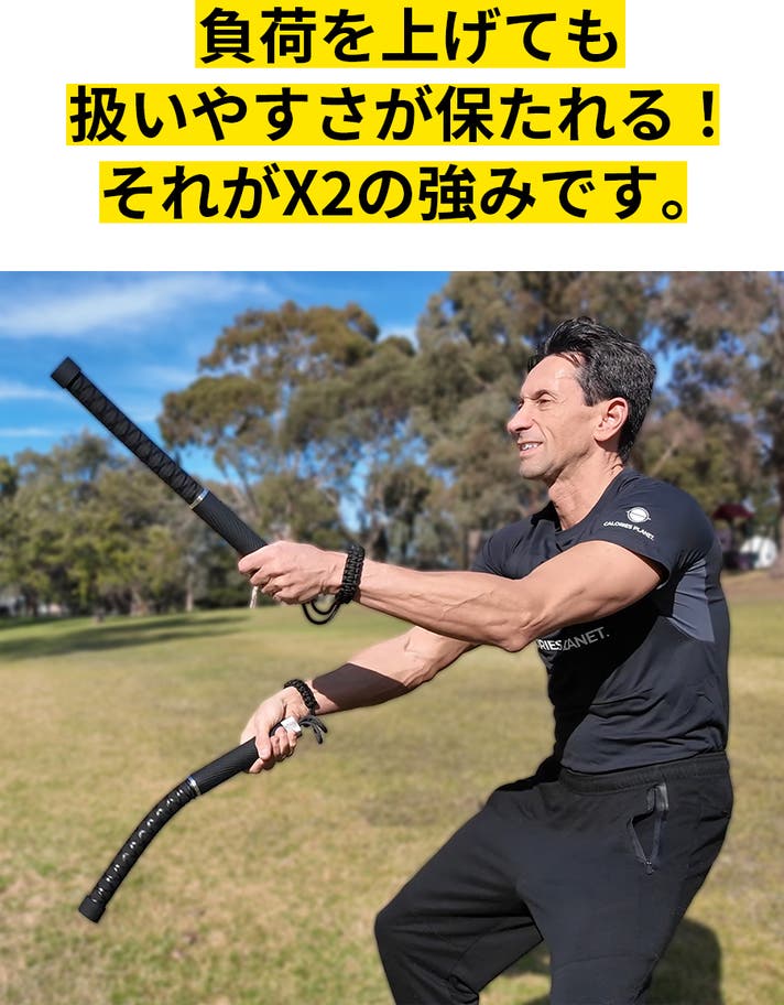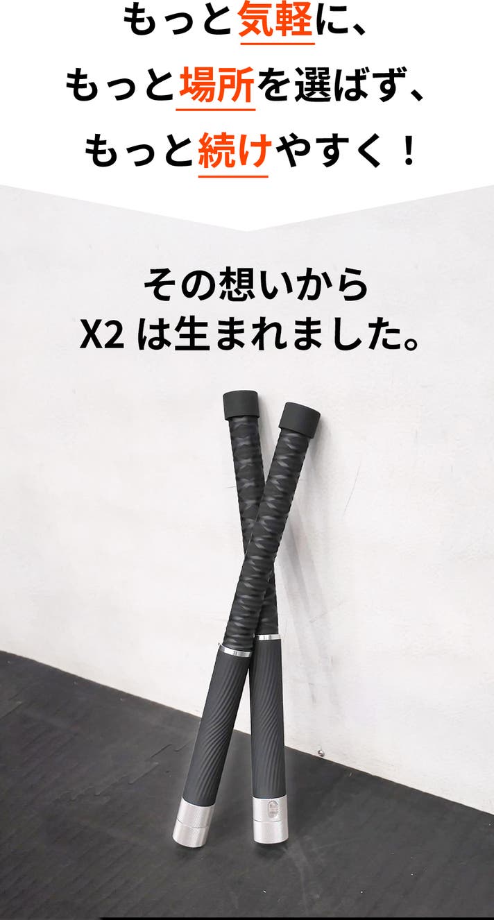 ロープレスだから、動き方は自由。X2 は、2本のロープを“1本のフィットネスバー”に組み替えられる2WAY変形構造。