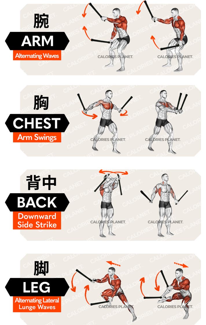 ダイナミックに振る動作で、全身を運動させるクラシックなワークアウトです。