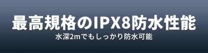 ※IPX8規格:水深2メートルで30分間水没しても浸水しないレベルです。
