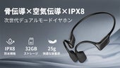 - IPX8防水に対応した骨伝導×空気伝導デュアルドライバー同時搭載のワイヤレスイヤホン