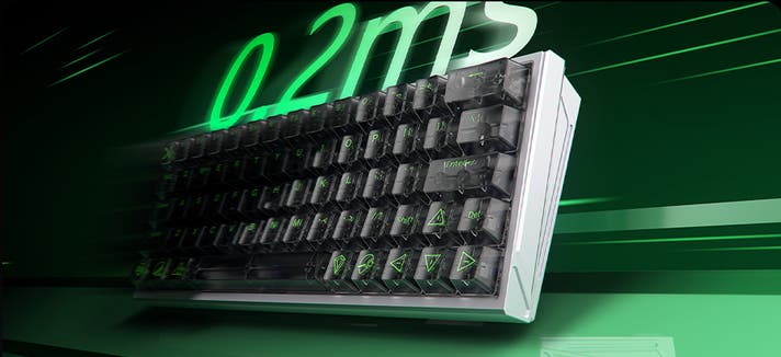 キーの動きを検知するだけでは不十分。その情報を“正確に処理する”性能が必要です。高性能フラッグシップチップが、0.01mm単位の入力データを瞬時に演算。約0.2msの低遅延・最大8000Hzの高速通信で、意図した操作を遅れなく伝えます。