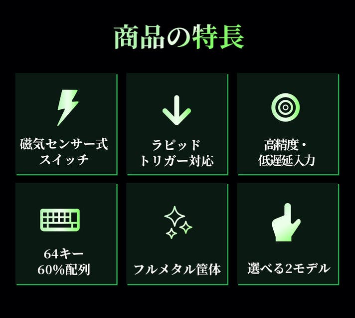 - 【磁気センサー式×ラピッドトリガー搭載】入力の仕組みから見直した競技向けキーボード