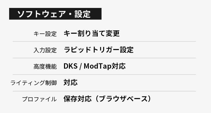 ラピッドトリガー・モッドタップ・RGBカスタマイズ・DKS & SOCD・キーリマッピング、ほか多数