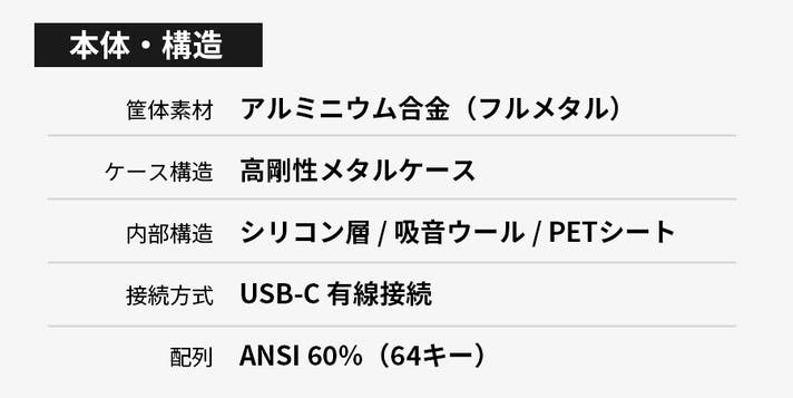 - 【60%配列】操作性実現。「体験型重視」と「実用型重視」の2タイプから選択可能