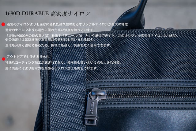 日本は雨や湿度が高い天気が多いため、バックパックの外側の生地に高密度1680Dナイロンを採用しており、優れた撥水があります。同時に、高品質のオリジナルチャックを採用しており、高耐摩耗と高耐久性の特徴は洗練されたデザインと結びつき、普段の通勤・出張・旅行など様々な場面と環境にも適応できるようになっています。