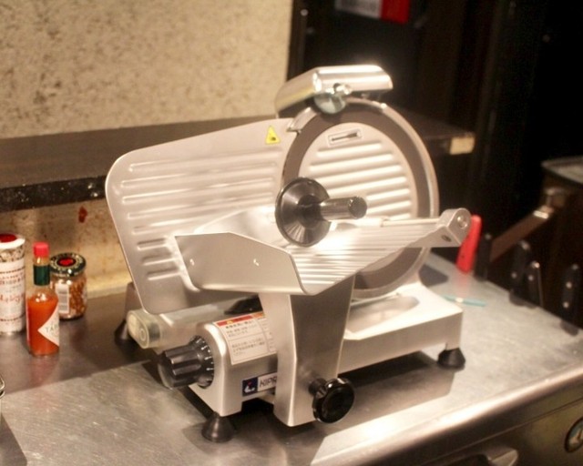こちらのスライサーで御注文ごとに生ハムをスライスして、1番美味しい状態でご提供いたします。
