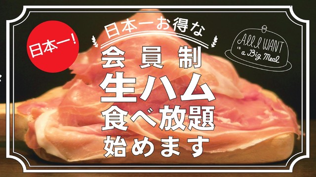 本物の生ハムをリーズナブルに、好きなだけ楽しんでいただける「生ハム食べ放題会員」が沢山集まれば、もっと多くの種類の、本物と自信を持って提供できる生ハムを提供できるかもしれないと考えています。