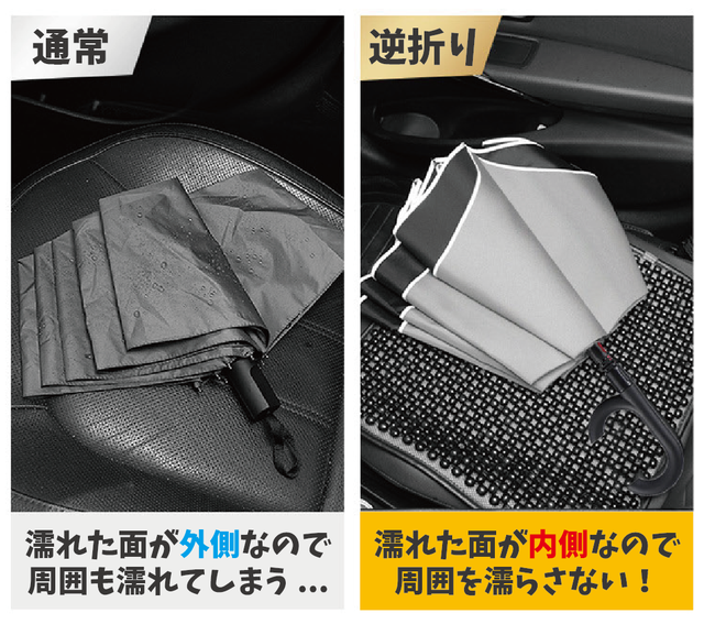 - 濡れた面が内側になる逆折り構造で周囲を濡らさない!ワンタッチ自動閉めで車に乗る際もスムーズに♪