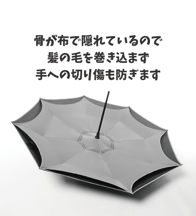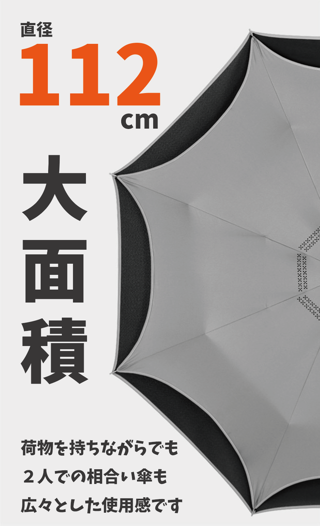 さらに布の二層構造で髪を巻き込まず、怪我もしにくく、撥水性もアップしました。濡れた面が内側になる逆折り構造で周囲を濡らさず、ワンタッチ自動閉めで車に乗る際もスムーズになります!112cmの大面積で相合い傘でも、荷物を持ちながらでも広々とした使用感を実感してください♪