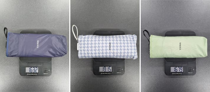 ネイビーは163gの超軽量で持ち運びに負担がありません。 パターンは182g、グリーンは168gほどの重さで同じく軽量です。