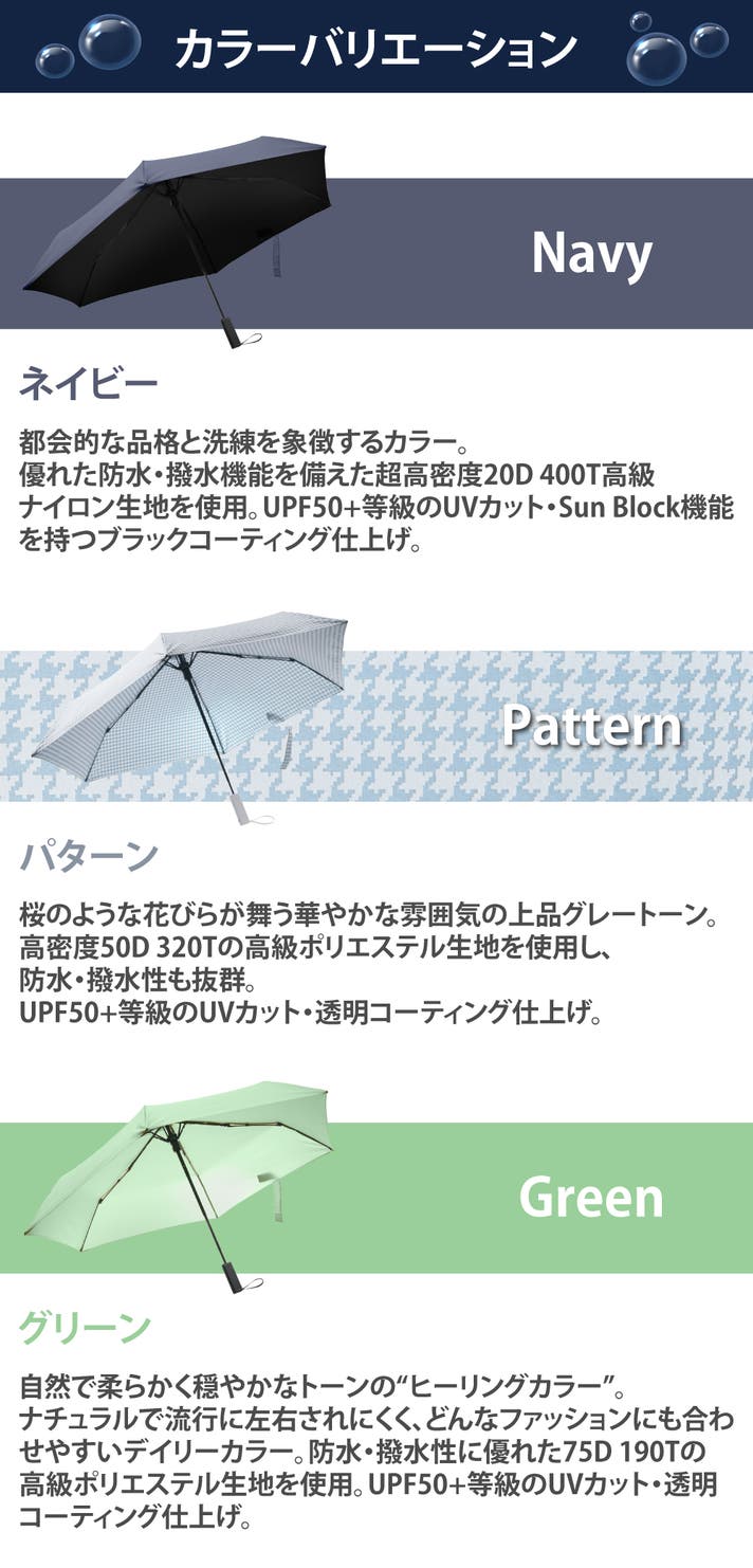 - 成人男性も握りやすい8cmの持ち手!UPF50+のUVカット & 高撥水で晴雨兼用!